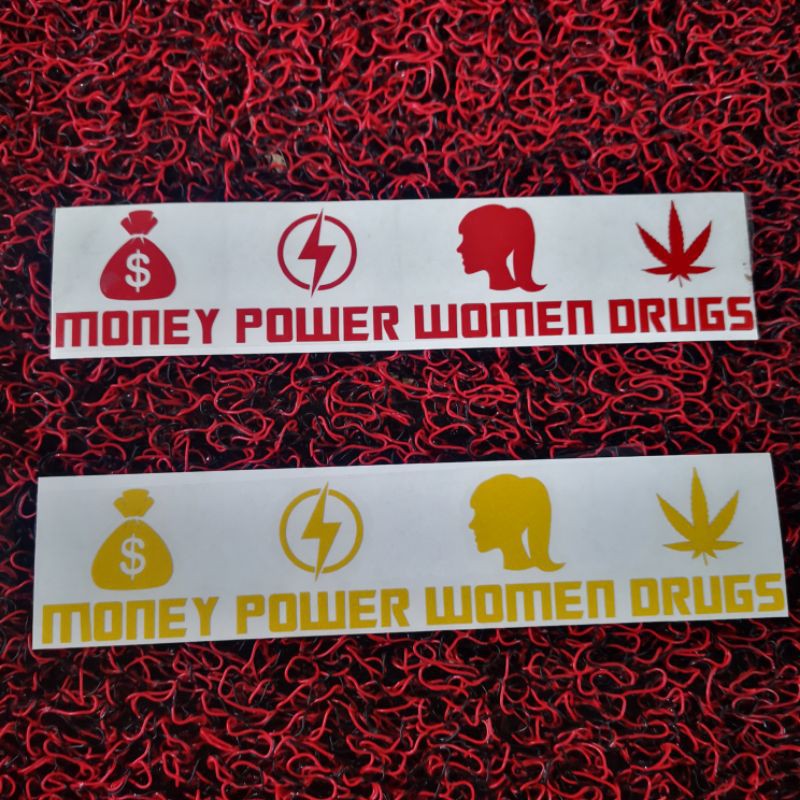 Samling Money Power Women Drugs Logo Bike Sticker. Decorate your laptops, water bottles, notebooks and windows. Little customs on honda dio.